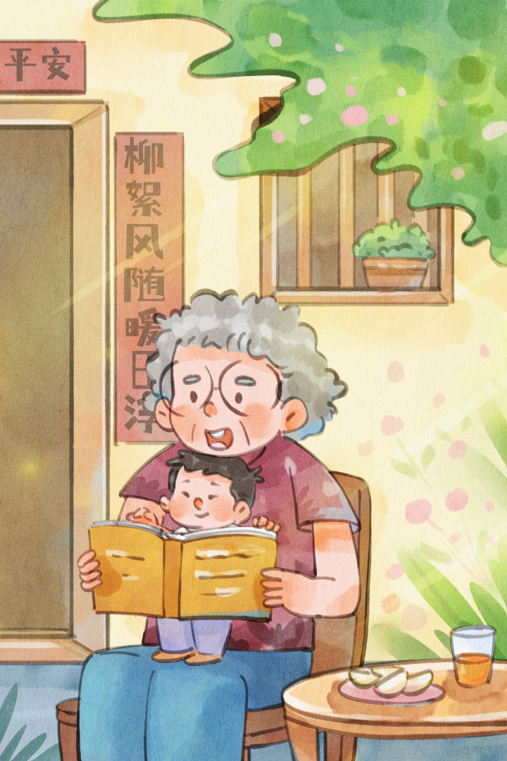 老人年龄大了,带孩子外出跑跑跳跳,可能跟不上孩子的脚步,但是喜欢在家里给孩子念书,也是很不错的。老人不厌其烦,给孩子念了一遍又一遍,孩子听得津津有味,非常入迷。